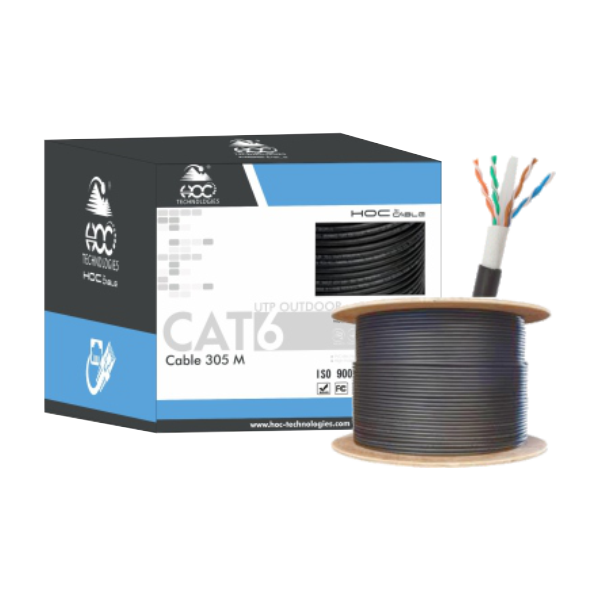 The HOC CAT6 M-COPPER UTP 305M OUTDOOR cable is a rugged, high-performance LAN cable designed for outdoor networking environments requiring durability, stability, and long-distance signal integrity. Built with 23AWG, 0.57mm M-Copper (CCA) conductors, this 4-pair unshielded twisted pair cable delivers reliable Gigabit performance for structured cabling, CCTV, broadband, and enterprise network deployments.