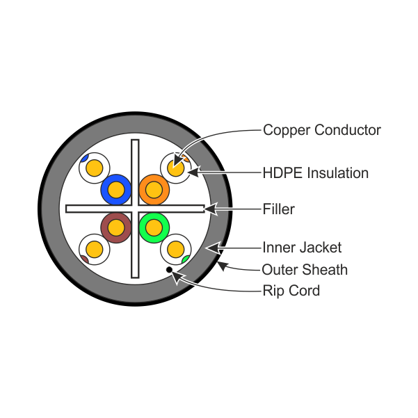 Engineered with HDPE insulation, dual PVC shielding layers, and a tough LSZH outer jacket, the cable offers superior protection against moisture, UV exposure, temperature changes, and mechanical stress. Fully compliant with ANSI/EIA-568C.2 and ISO/IEC 11801 Class EA standards, it supports 1000 Base-T, 10Gb Ethernet, ATM networks, and other high-speed applications with minimal interference.