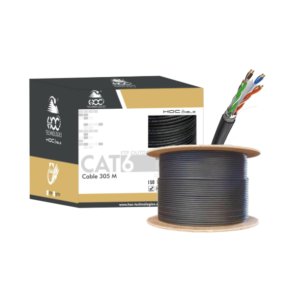 The HOC CAT6 M-COPPER SFTP 305M OUTDOOR cable is a fully shielded outdoor LAN solution featuring 23AWG conductors, AL-foil, and braided shielding for superior interference protection. With LSZH jacket, HDPE insulation, and durability tested for UV, moisture, and extreme temperatures, it delivers stable performance for Gigabit & 10Gb Ethernet applications. Ideal for CCTV and outdoor network setups, it comes in a 305M wooden drum, ensuring long-distance durability and reliability.