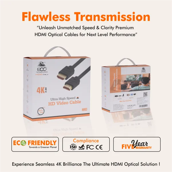 The HOC HH03 High-Speed HDMI Cable is engineered to deliver exceptional 4K UHD performance with full compliance to the HDMI 2.0 standard. Designed for high-definition displays, audio/video devices, and professional installations, this cable ensures uncompressed digital transmission up to 18 Gbps, supporting 4K@60Hz (4:4:4) and HDR video formats for crystal-clear visuals and stunning color accuracy.