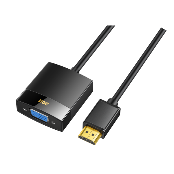 The HOC CHARAK HDMI to VGA Connector is a compact, durable, and reliable video converter designed for seamless connectivity between modern HDMI devices and older VGA display systems. Equipped with a high-quality internal IC chipset, it ensures smooth, stable, and lag-free video conversion up to Full HD 1080p @ 60Hz, making it ideal for projectors, monitors, classroom smart boards, and office presentation setups. Its premium ABS + metal shell guarantees long-lasting durability, while the plug-and-play design eliminates the need for drivers or external power.
