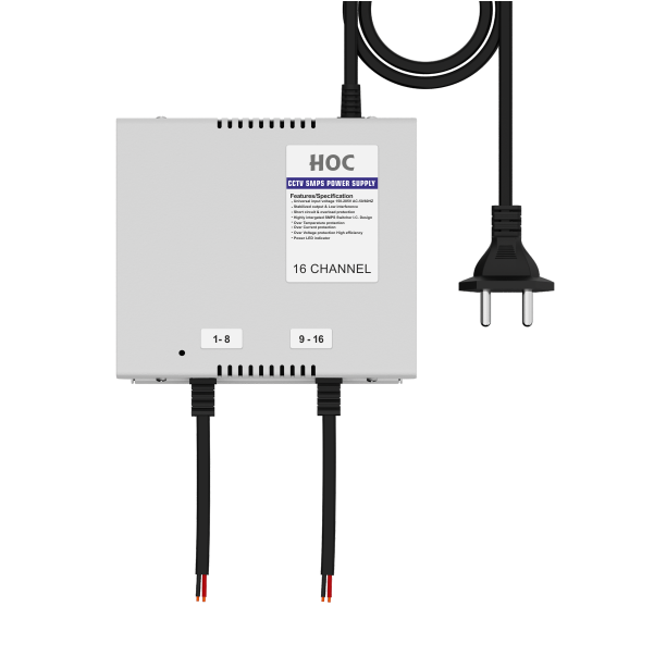 The HOC POWER Series HM-16 Single Output SMPS is a heavy-duty, high-capacity power distribution solution engineered for large-scale CCTV, networking, access control, and industrial security installations. Designed with a highly integrated SMPS switcher IC, it provides clean, stable, and low-interference DC output, ensuring flawless performance across multiple high-load devices simultaneously.