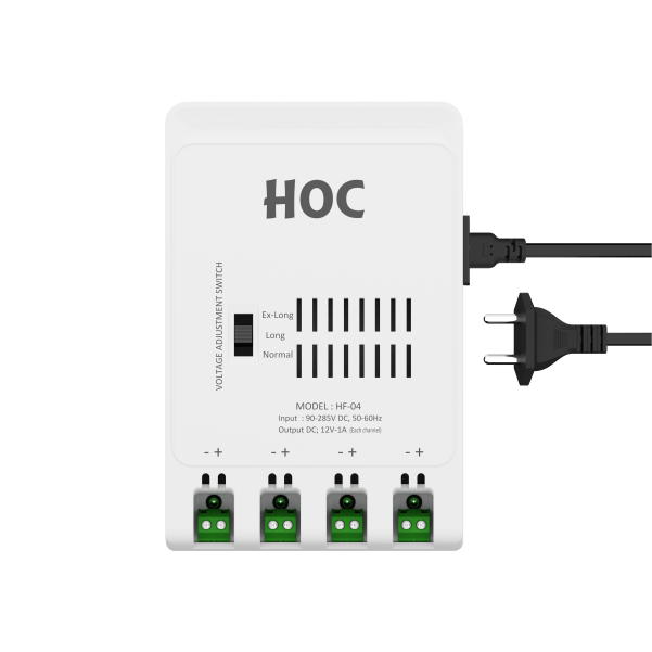 HOC HF-04 PLUTO 4 Channel Multi Output SMPS is a compact and high-performance power supply designed for CCTV, networking, and security systems. It features MOV surge protection, multi-layer safety (OCP/OVP/OLP/OTP), resettable fuse protection per channel, and auto-reset short circuit recovery. With stable, low-noise output and a cable compensation switch for long runs, it ensures reliable power distribution for professional installations. Backed by 2.5 years warranty.